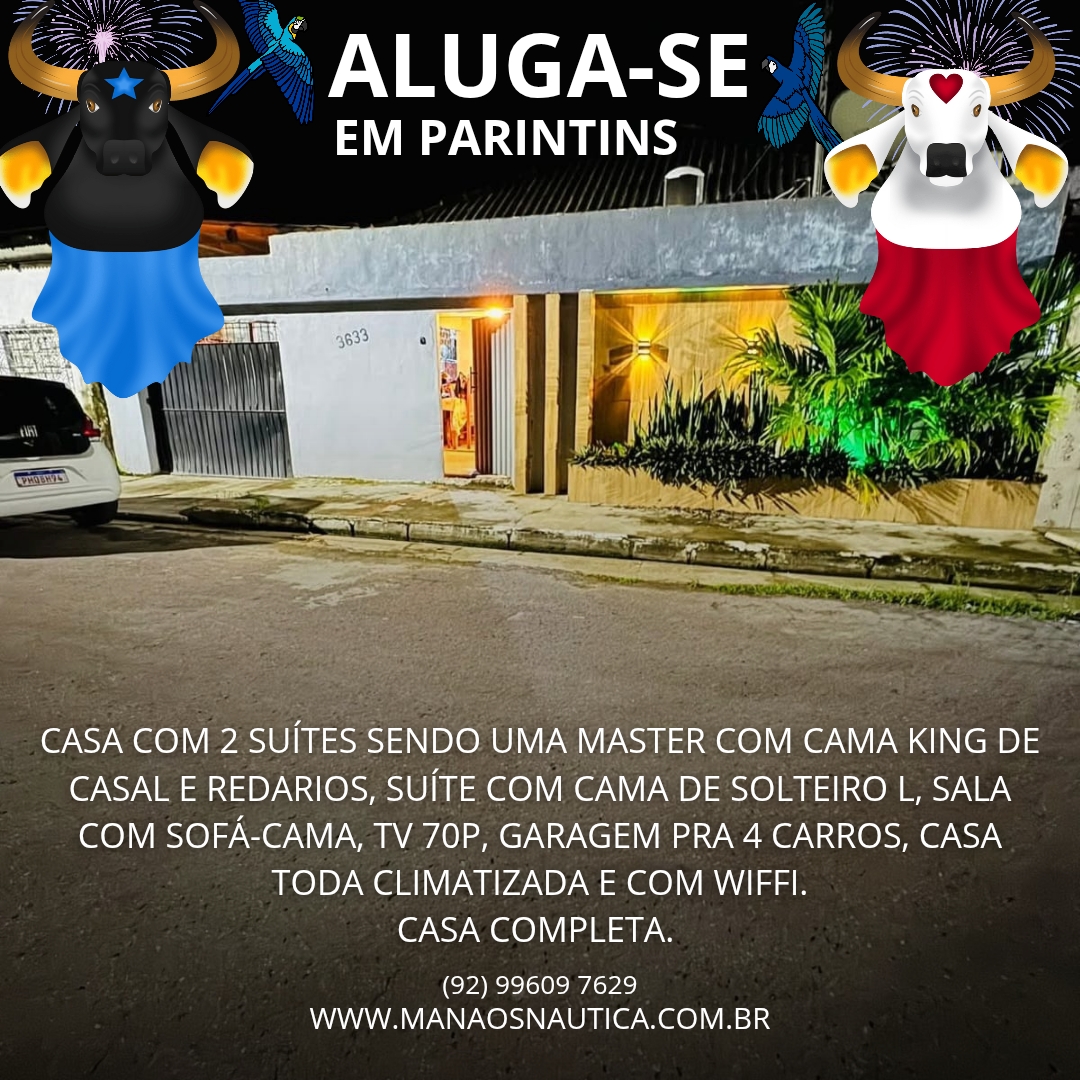 A casa é completamente equipada para temporada, proporcionando uma estadia confortável e funcional. Ideal para grupos ou famílias que desejam curtir o famoso Festival de Parintins com comodidade e segurança.